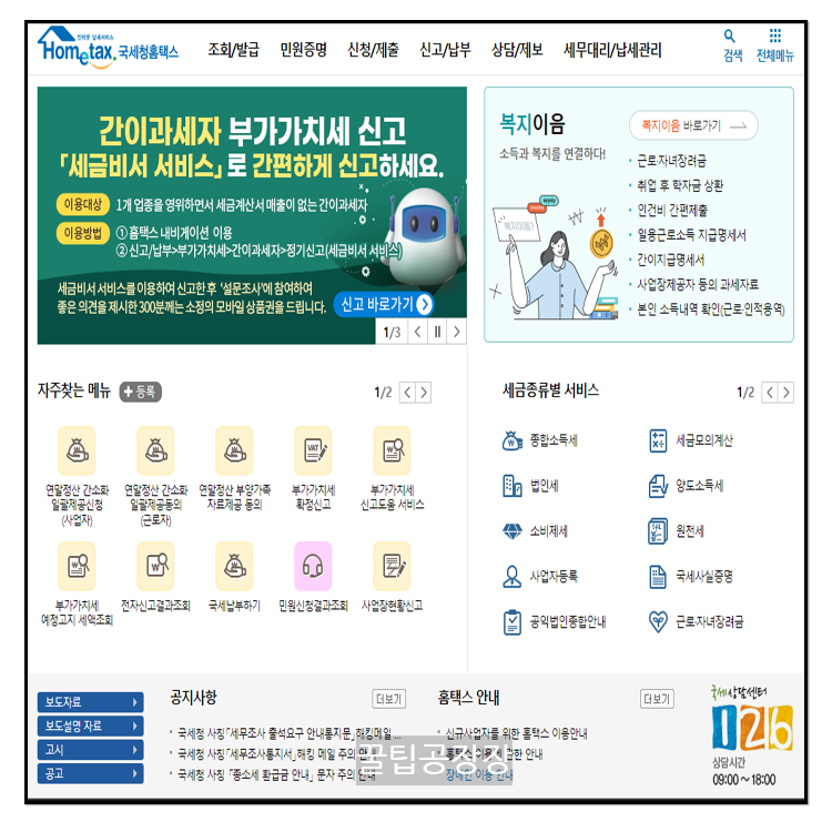 1. 홈텍스 접속